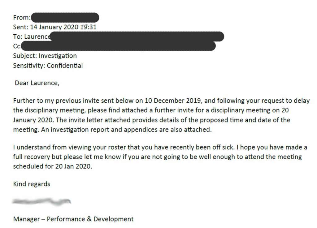 Although I’ll discuss the grievance investigation and disciplinary meeting in depth later in my story, for now, I want to share the letter that Hayley sent me advising me of the outcome of her investigation.